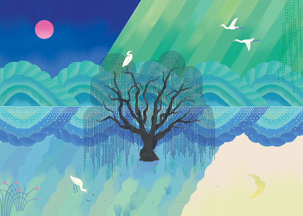 물 어린 초록